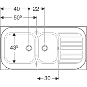 - Trous amorcés pour robinetterie monotrou, un par côté.