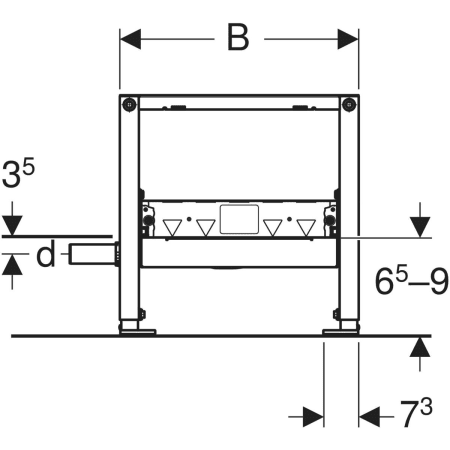 - Prévoir jeu de fixations murales Geberit Duofix pour montage individuel (n° de réf. 111.815.00.1) ou montage système (n° de réf. 111.844.00.1), raccord de transition PE-HD sur PVC, Ø 40 (n° de réf. 154.297.00.1)