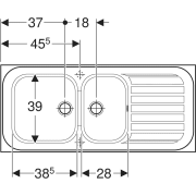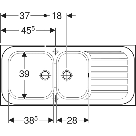 - Trous amorcés pour robinetterie monotrou, un par côté.